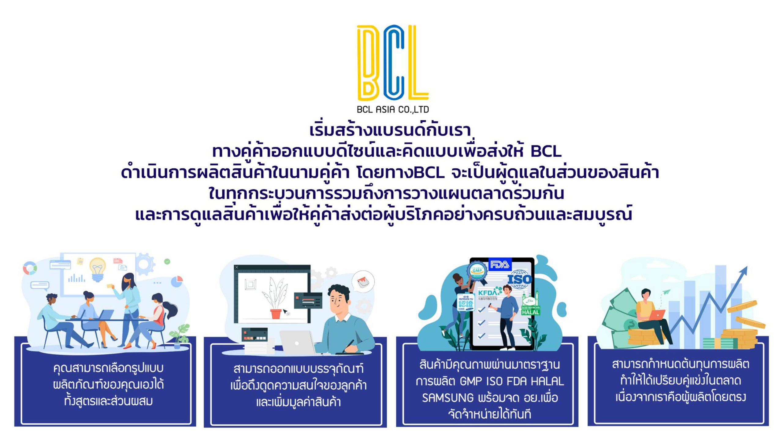 ทุกรายการสินค้าที่ผลิตกับทางเราบริษัท บีซีแอล เอเซีย จำกัด มีมาตรฐานขององค์การอาหารเเละยาของไทยเป็นพื้นฐาน